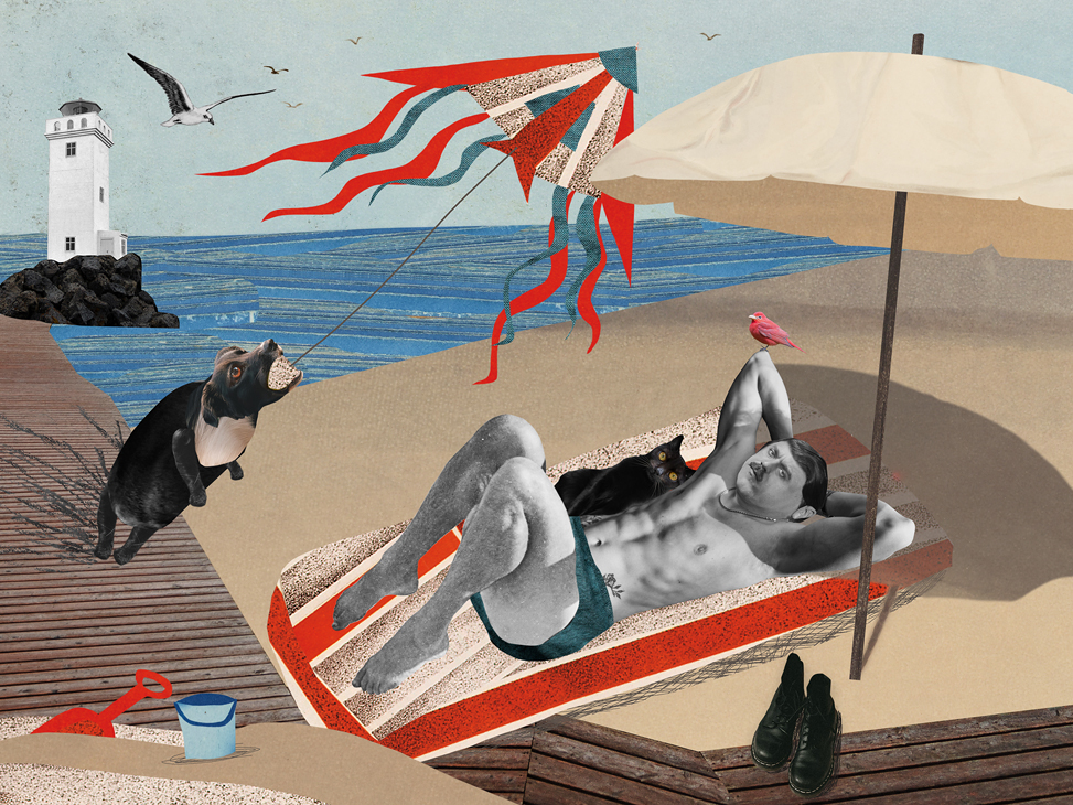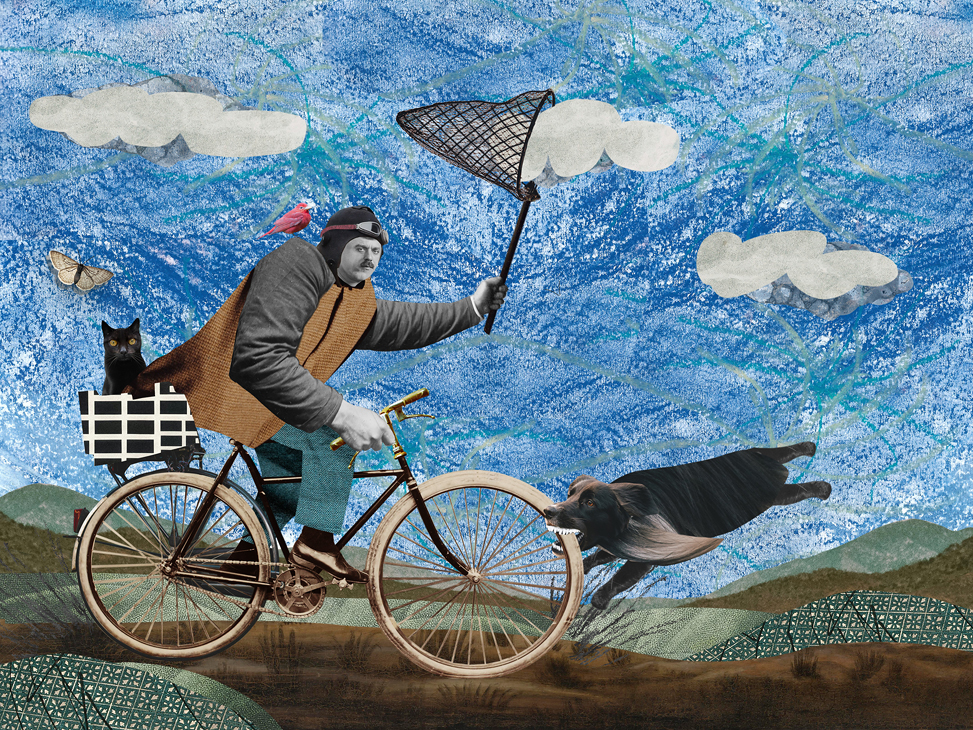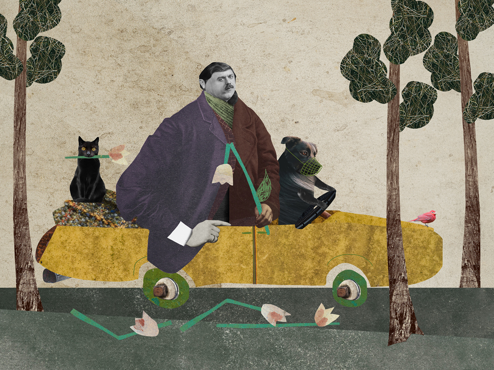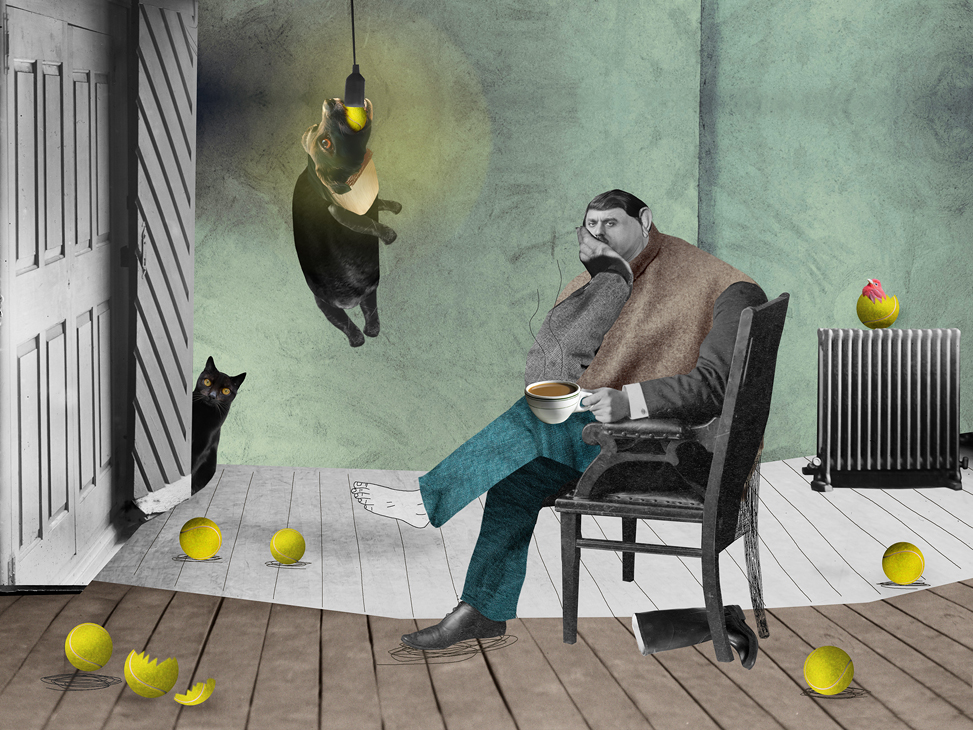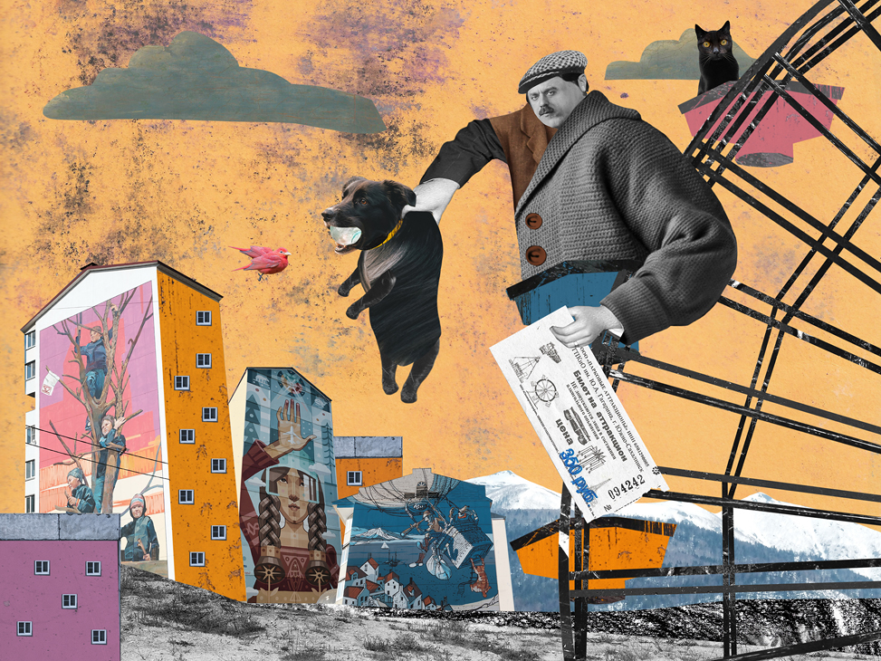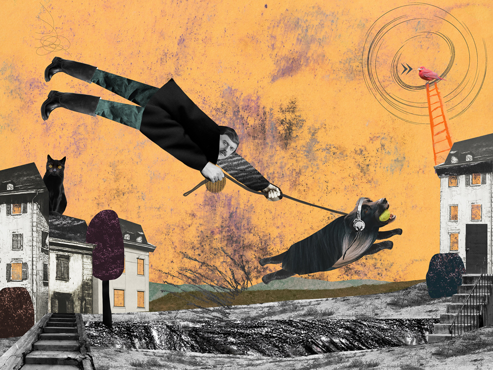 Наталия Караваева целый год работала над серией коллажей о своей гиперактивной собаке и условно веселых выгулах по утрам и вечерам. Из этой боли родились совершенно прекрасные работы и целая выставка.